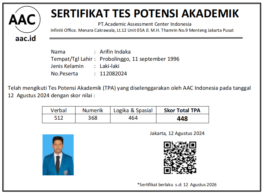 Unduh sertifikat TPA Arifin Indaka. Klik disini