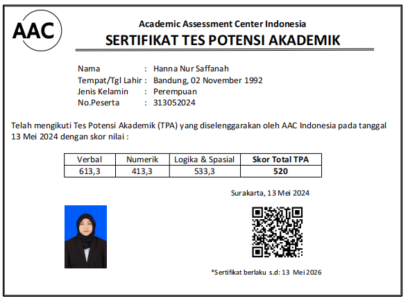 Unduh sertifikat TPA Hanna Nur Saffanah. Klik disini