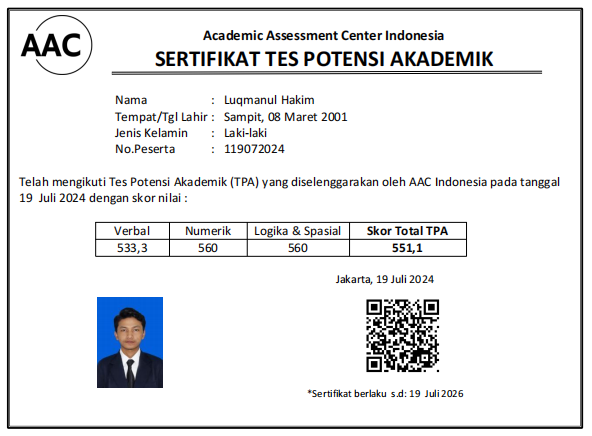 Unduh sertifikat TPA Luqmanul Hakim. Klik disini