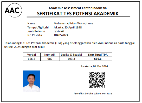 Unduh Sertifikat TPA Muhammad Irfan Wahyutama.