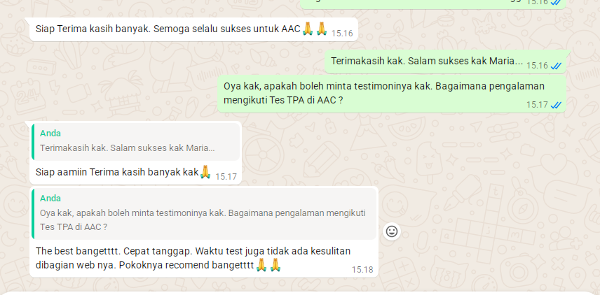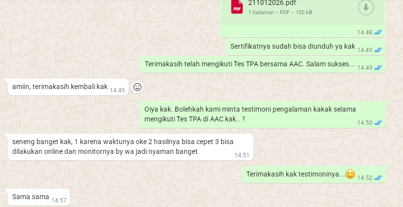 Testimoni Peserta Tes TPA AAC